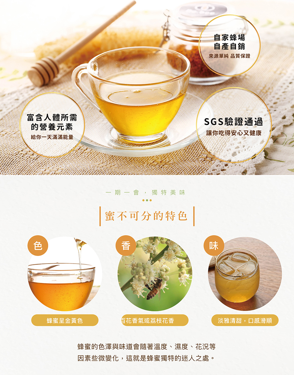 - 自家蜂場,自產自銷,並且有實體蜂場